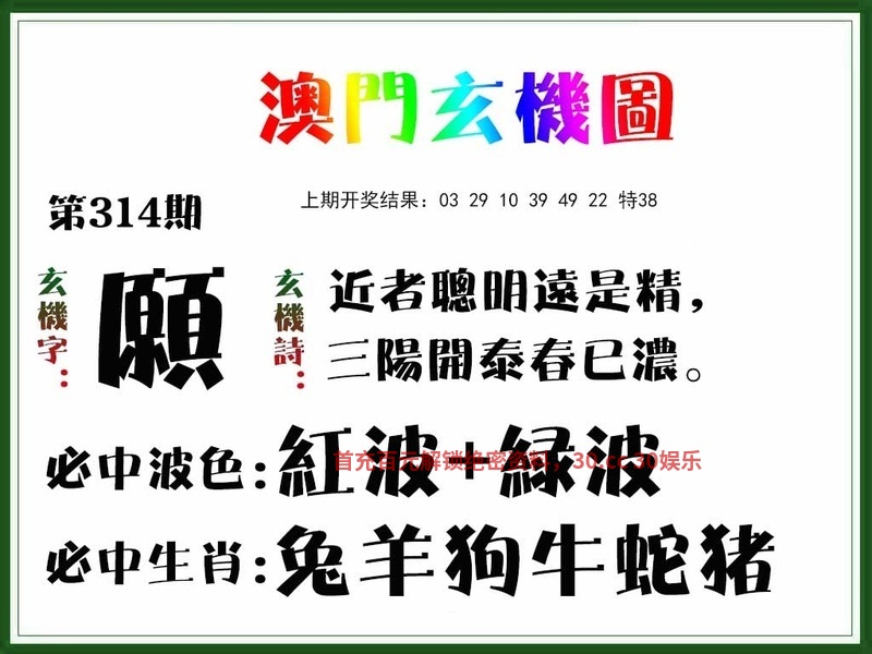 308期天【龙猪牛】地【羊鸡蛇虎】开:兔39准